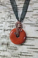 Pendant Copper Wire Woven Red Jasper Donut Bead